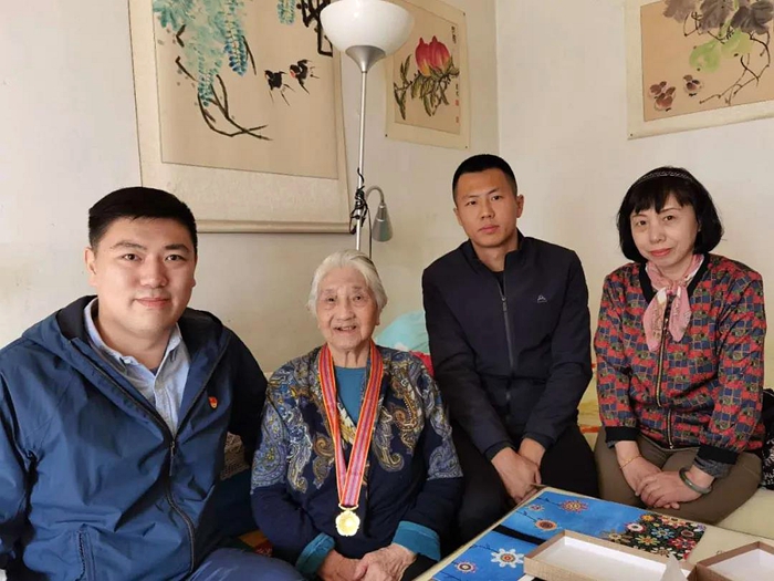 10月21日,北京市工业技师学院团委、下沉社区青年同集团老干部部的工作人员一行看望了90岁高龄的抗美援朝老兵金平奶奶,同时也为老战士金平奶奶送上抗美援朝70周年纪念章,并向金平奶奶表示敬意和衷心的问候。